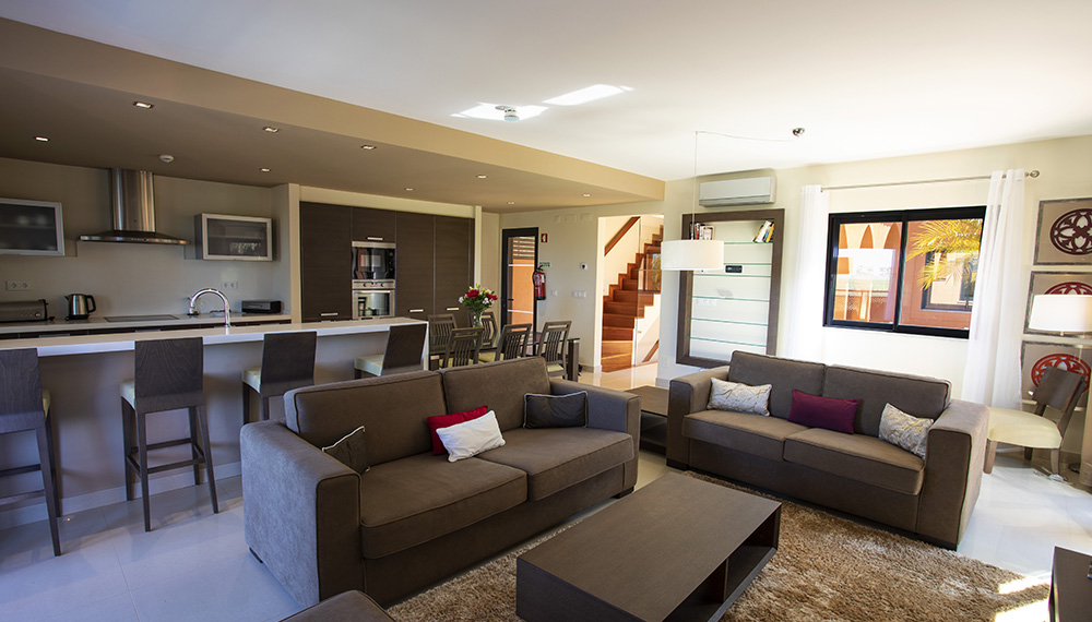 Här bor man i sin egen lägenhet med all bekvämlighet man kan tänka sig. Lägenheterna är placerade på bottenvåningen och är på ca 108 kvm. Köket är fullt utrustat med bla diskmaskin, tvättmaskin, kyl o frys, micro, ugn. Lägenheten har även ett rymligt vardagsrum, matplats, två sovrum och två badrum. Från vardagsrummet har man utgång till en mysig terrass. Det finns även utomhuspool att tillgå.