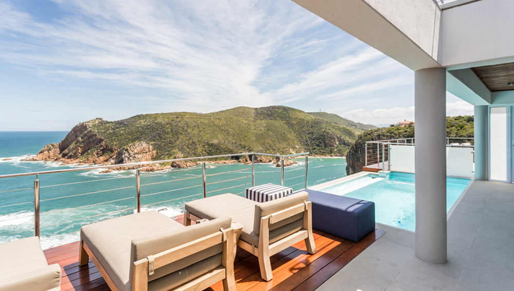 Beläget på de berömda klipporna i Knysna Heads, med 200 meters fall ner till stranden Coney Glen och utsikt över havet, har du den ultimata resorten som andas lyx, komfort och kvalitet.