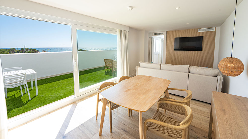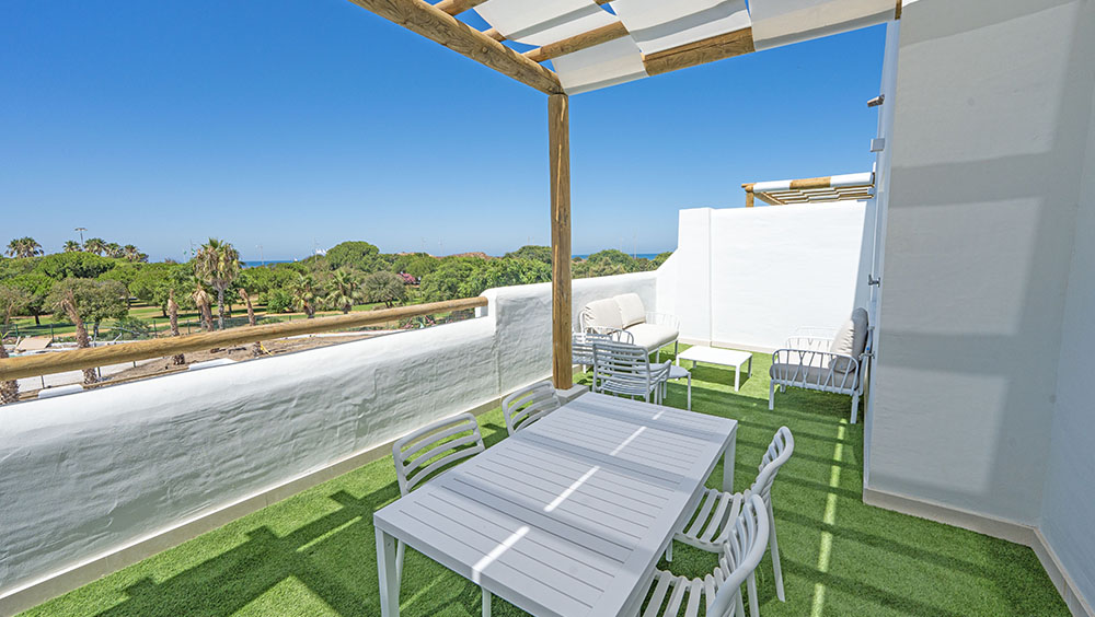 På anläggningen finns det dessutom två pooler, en bar och en chill-out-terrass med havsutsikt. Sammantaget blir detta ett utmärkt val för din longstay. Anläggningen har ett starkt hållbarhetsfokus med bioklimatisk arkitektur, förnybar energi, ansvarsfull vattenförbrukning och satsar även på miljövänliga fritidsaktiviteter. Några av regionens vackraste stränder, inklusive Punta Candor, ligger inom gångavstånd och inbjuder till lugna promenader i solnedgångarna vid havet. Här kan du njuta av havet, böljande sanddyner och gyllene stränder. För oss som gillar golf finns det flera mycket bra banor i närheten och samtliga fyra banor som ligger inom 40 minuters bilresa från boendet ingår i Golfvistelses paket, däribland den populära 27-hålsanläggningen Costa Ballena Club som ligger endast 10 minuter bort med bil.